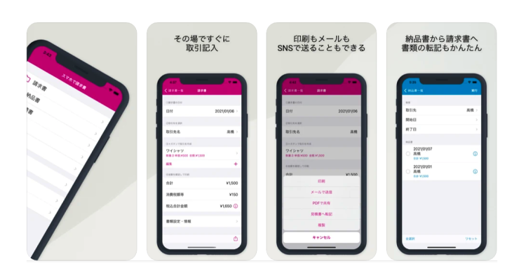 スマホで請求書は、中小企業向けに開発されたアプリで、スマートフォンやiPadを使用して簡単に請求書を作成することができます。