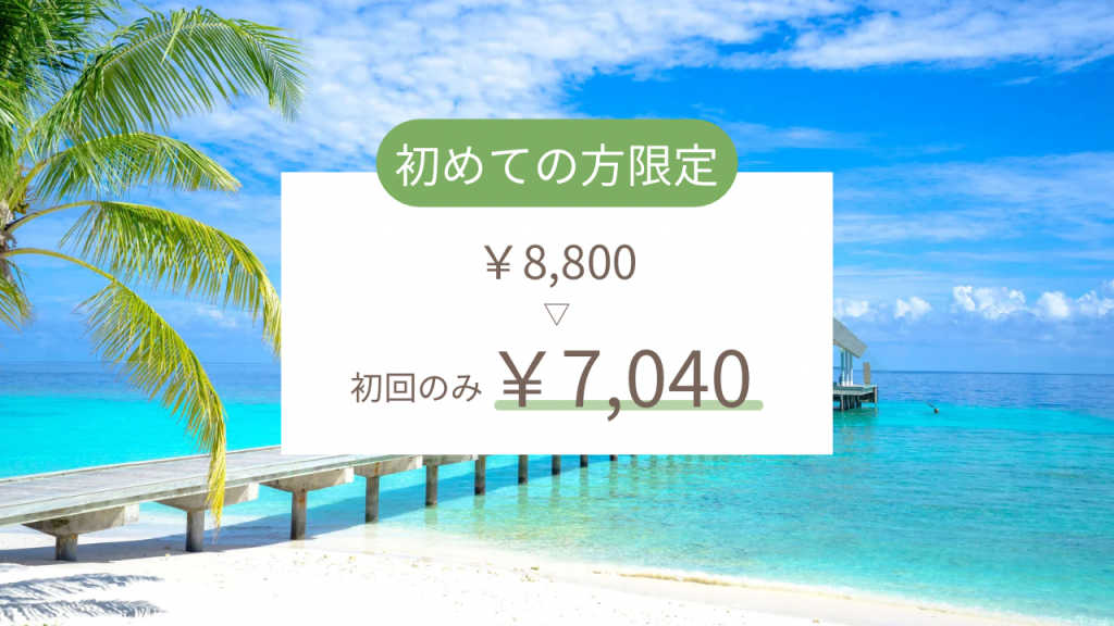 ※こちらは初めての方限定のコースです ¥8,800の内容が、 初回のみ¥7,040になります◎ …………………………………………… \1番人気/ 全身痩せ&モデル級美肌贅沢コース(120分) 驚きのサイズダウンはもちろん、 水素の贅沢使いで小顔・美肌までGET!! ▽コース内容▽ ①カウンセリング ②美肌小顔洗顔 ③全身リンパマッサージ ④Luluonn(ルルオン)60分 ⑤水素フットバス ⑥水素パック ⑦贅沢NMN美容パック ⑧Wリンパマッサージ
