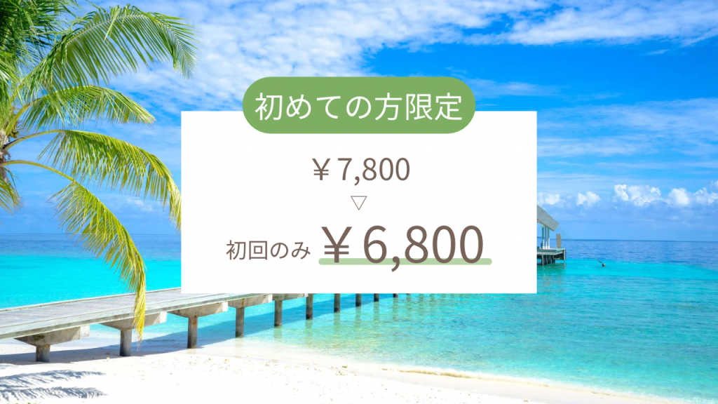 ※こちらは初めての方限定のコースです。 通常¥7,800が、¥6,800になります◎ ……………………………………………………………… 浮腫&セル脂肪徹底分解!美脚痩身コース(120分) 水素フットバスとルルオン前後のリンパマッサージの 相乗効果で美脚が手に入る! O脚・X脚矯正も同時に行います◎ ▽コース内容▽ ①カウンセリング ②美肌小顔洗顔 ③全身リンパマッサージ ④Luluonn(ルルオン)60分 ⑤水素フットバス ⑥Wリンパマッサージ