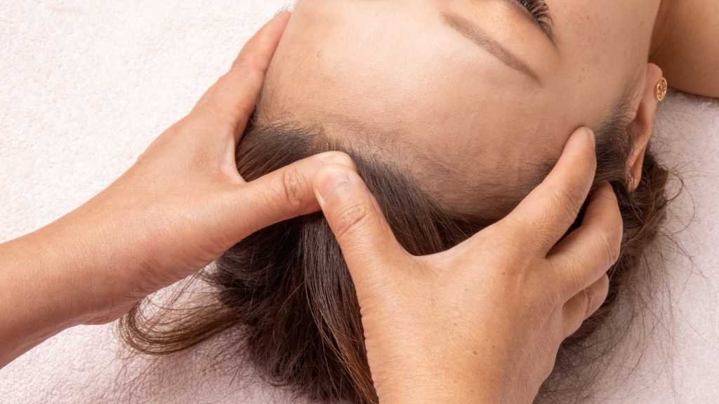 オールハンドで、ヘッドのツボを集中ケア・頭の中にあるツボをかっさ板で刺激することによって眼もスッキリ!