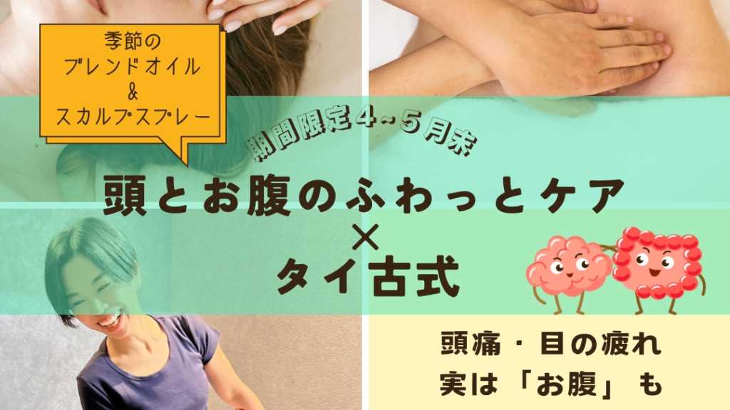 ● リラックス90分 首肩・眼精疲労・お腹の不調にやさしくアプローチ 脳の疲れやお腹の緊張にやさしく寄り添う 期間限定特別コースです。 (4~5月末まで) ● 全身タイ古式/60分 ● お腹(オイル+ホットタオル)/10分 ● 頭・顔・首(スカルプスプレー+ホットタオル)/20分 ホッと温めゆるめることで 緊張した神経がフンワリ落ち着かせます。 【こんな方におすすめ💡】 ☑︎ 目が疲れやすく、ぼーっとする ☑︎ 首や肩のこりが慢性的 ☑︎ お腹の張り・冷えがある ☑︎ 呼吸が浅く、寝てもスッキリしない ☑︎ 胃腸の不調や便秘が気になる ☑︎ 心身ともにリセットしたい ≪施術の流れ≫ 🍵季節のお茶でひと息 ↓ カウンセリングシートのご記入(初回の方) ↓ お着替え ↓ 足湯で全身をあたためながら お悩みやご希望をうかがいます♨️ ↓ 🔽施術スタート(90分) 【1】タイ古式マッサージ(60分) 足先〜頭まで ゆったりとしたリズムでストレッチ。 呼吸を深めるポジションを取り入れながら 体の土台からめぐりを整えます。 【2】お腹のオイルトリートメント(10分) 季節のブレンド2種から お好きな方をお選びいただけます。 温かいオイルでお腹まわりをふんわりケア。 ホットタオルで温め拭き上げることで、 お腹全体がふっとゆるみ 呼吸も楽になります。 【3】目元・後頭部・顎まわり(20分) スカルプスプレーで頭皮をシュワっと 目元・首元をホットタオルで温めながら 後頭部・こめかみ・頬骨・顎・目元など お顔回りもやさしくゆるめていきます。 最後にホットタオルで お首もとを温めて鎮静 ↓ お着替え・アフターティー🍵
