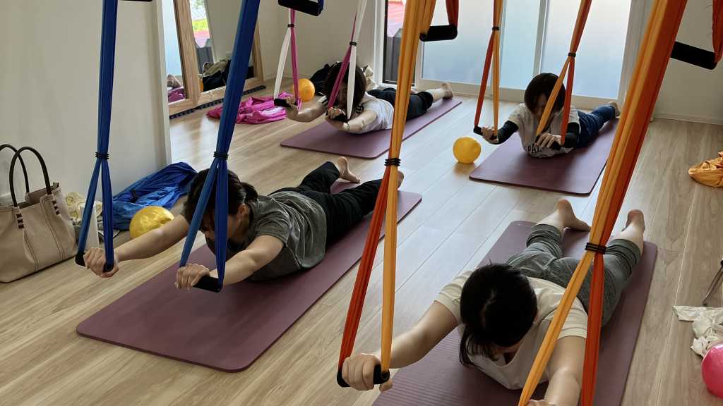 6つのハンドルとハンモック状のサスペンションを使用し、不安定な状態でエクササイズをすることにより、深層部に働きかけ、インナー、コア共に鍛えていきます。 背骨周りの姿勢が整いますので、肩こりや腰痛などにも効果が期待できます。 産後や加齢による骨盤底筋群の弱化や、それに伴う内臓下垂なども逆さまになることで、改善されます。 どなたでも安全に効果的なトレーニングをすることが可能になります。 スリングと呼ばれるハンモックが、身体を適切にサポートしてくれます。 初回体験 2,500円 単発 3,500円 3回券 ¥9,600(3200) 2ヶ月有効 6回券 ¥18,000(3000) 3ヶ月有効 11回券 ¥30,800(2,800) 4ヶ月有効