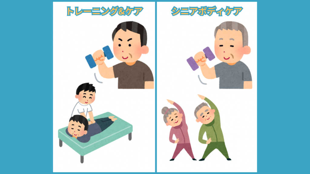 ■サービスの内容 ①トレーニング&ケア ②シニアボディケア 各コースの50分セッションです。 ■当日の流れ 開始時間5分前を目安にお越しください。 ご希望・ご選択のコースにて対応致します。 ■予約の際の注意事項 月会費の方は前払いの為、都度費用は発生いたしません。 ※予約希望時間の2日前(48時間前)にて、システム予約の受付が終了します。直前のご希望についてはHPもしくはメールよりお問合せください。 ■キャンセルに関して 前日22時まで可、それ以降はキャンセル100%頂戴致します。(無断キャンセルも同様)
