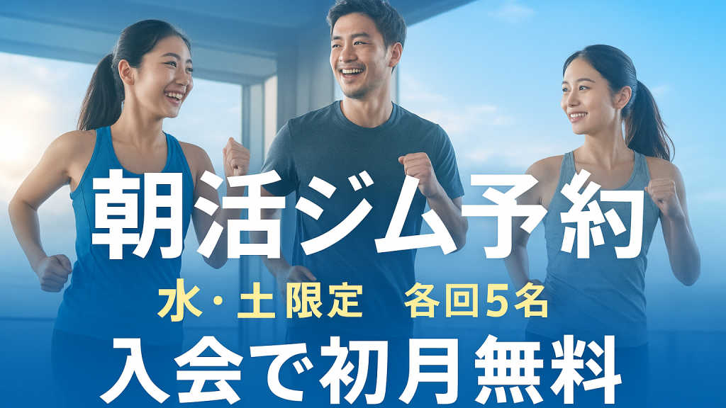 1日の始まりを爽快に! 毎週水曜・土曜の朝に行う【各回3名限定】の少人数トレーニングです。 初回体験後にご入会いただくと、初月の会費が無料✨ トレーナーがサポートするため、初心者の方も安心してご参加いただけます。 ご予約を受けましたら、メールにて篠崎からご連絡で事前確認をさせていただきますので、必ずご返信ください。