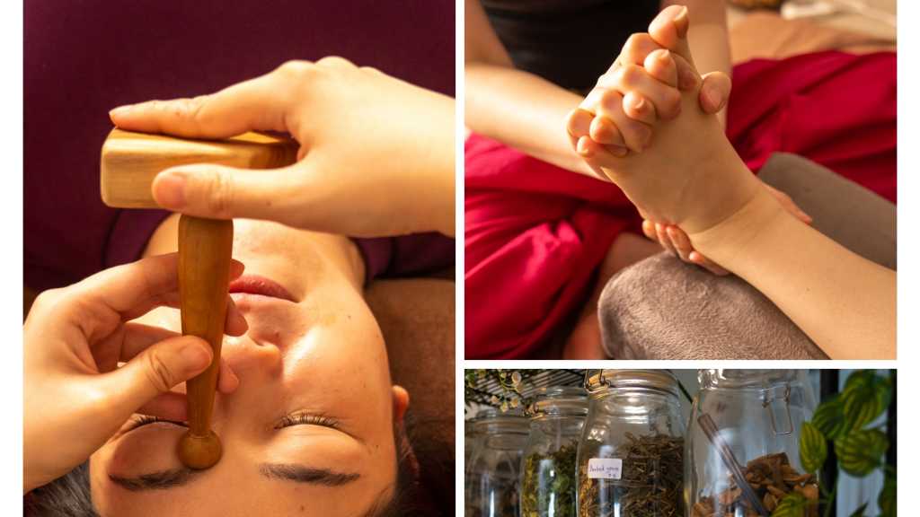 長時間の座り仕事で起こる“上半身過密・下半身停滞”の状態。 頭はグルグル思考が止まらず休まらない。 脚腰はつねに重だるい。 目は疲れ、首肩は固まり、やる気が出ない。 本コースは足元から頭までを縦につなぎ直す お身体の循環再構築セッションです。 まず足裏リフレで下半身の滞りを解放。 続いてヘッドカッサと木槌療法(トークセン)で 頭部と首の過緊張をゆるめます。 仕上げは薬草サウナ。 柔らかなミストに包まれ呼吸が深まり、深部から温められることで全身の巡りを一気に促進。 薬草はヨモギを中心に陳皮・桂皮・百合などを合わせた血巡り改善用の組合せです。 振動と温熱で流れを整え、終わる頃には頭も脚も爽快に。 デスクワーカーのための全身コンディショニングコース。