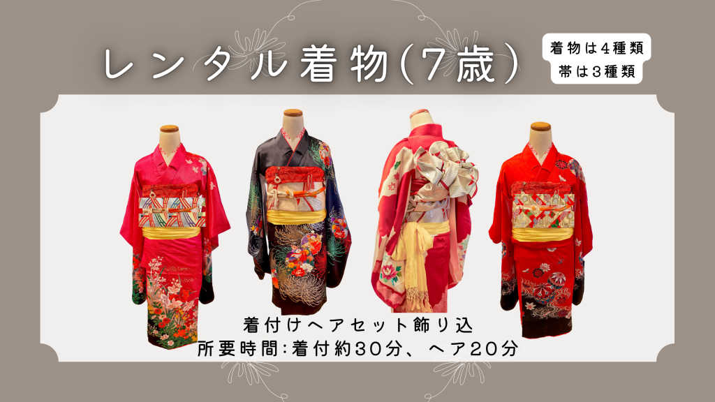 七五三7歳さん本格振袖プランです。 事前予約にて浅草周辺の同行撮影も可能です。 撮影プラン詳細はこちら URL: ■サービスの内容 【基本セット】 7歳用振袖一式、着付、髪飾り、ハコセコ一式、草履、バッグ、手荷物お預かり、安心パック(汚れや破損等の保険) ※ヘアに関しては簡単なヘアセットのみとなります。 オプション+2,200円にて日本髪風のセットが可能です。 上記をご用意しておりますので手ぶらでお越しください。 気温が寒い場合は下に肌着やスパッツを履くなどの防寒をお願いいたします。 その他のプランはこちら https://tol-app.jp/s/asakusawasou ■当日の流れ 1.来店後に着物を選びます。※事前に見学も可能です。 2.着付けをします。 3.簡単なヘアセットをします。 4.小物、履物などを選び外出。※外出中の荷物預かりは無料です。 5.18:00までに返却。脱衣はセルフとなります。 ■予約の際の注意事項 複数名での予約の場合は、お待ちいただく可能性もあります。 ■キャンセルに関して キャンセル料はなし