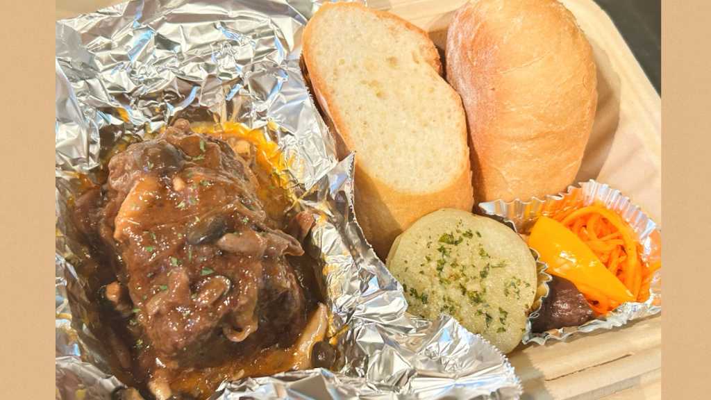 ◎ランチ&ディナーでも人気のハヤシ風 俵煮込みハンバーグとプチバゲット&プチ惣菜のBOXでございます。 →ツナギを最小限にしっかりしたハンバーグですので…縦割りにカットした状態でお納めさせていただきます。 ①《数量・ご来店時間》を【備考欄に必ず記入】して下さい。 ②お一人様、【上限4個まで】のご予約とさせていただきます。 ③7日前までのご予約となります。 ④お渡し時間=12:00〜13:00 / 17:00〜19:00 ⑤当日は→昼の部11:00〜12:00まで / 夕の部11:00〜17:30までにお電話下さい。 ⑥仕上がりまでに30分はかかりますので、早めのご予約をお願いしております。 ⑦カトラリーは付属いたしません、お客様でご用意お願いいたします。 〜・〜・〜・〜・〜・〜・〜・〜・〜 ◉当店より【承認メール及び予約確定メールが届いた時点】で《ご予約成立》となります。 ◉メールBOXの【ご確認】をお願い致します。届かない場合=ご記入漏れ等により《予約保留・未確定》の状態です、お電話にてご確認をお願い致します。 ▷定休日や立て込んでいる場合、翌営業日以降のご返答となる場合がございます、ご了承下さい。 ◎お客様ご記入の不備等により当店からの【予約確認メールでのレスポンスが遅延の場合】後者のお客様を優先しキャンセルのメールを送らせて頂く場合がございます、ご理解下さい。 ◎3日前にWebサイトより【確認メール】が届きます。【表記が①となっている場合がございますが受付時のご希望で間違いありません】ご安心下さい。 ※前日及び当日キャンセルにつきましては、合計金額の100%をご請求致します。 ※全ての事項におきまして、無断キャンセルにつきましては次回より予約受付を致しかねます。 ※キャンセルは、お電話のみの受付とさせて頂きます。