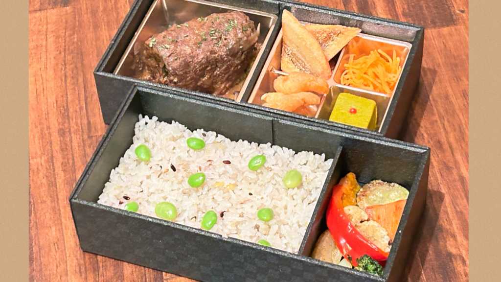〜接待や会食に、嬉しい日のテーブルに〜 ◎ランチ&ディナーでも人気のハヤシ風 俵煮込みハンバーグをお弁当に。(ご予約=4個から) *お野菜出汁炊き込みご飯から始まり…約7品を詰め込んだお品でございます。(別途 甘味付き+350円) →ツナギを最小限にしっかりしたハンバーグですので…縦割りにカットした状態でお納めさせていただきます。 (※写真は以前の参考です) ◉贅沢ステーキ重(別途 甘味付き)=3,800円 (※写真はHPをご覧ください) ▶︎①お弁当の種類、②予約ご希望個数、③ご来店時間を【備考欄に必ずご記入】下さい。 ▶︎【追加ご予算でのお支度】も承っております、備考欄またはお電話にてお問い合わせ下さいませ。 ※基本ご予約カレンダー日の受付とはなりますが【他お日にちをご希望の場合には、お電話にて問い合わせ】てみてください。 ▷月曜等、定休日に当たるお日にちでは【6個以上】のご予約にて承ります。 ▷お渡し時間はWeb記載時間にて応相談、出来る限りお客様のご希望に沿ってお支度致します。 ▶︎当店からの《承認メールがお手元に届いた時点》で《ご予約成立》となります。 ▶︎前日にサイトより【確認メール】が届きます。【個数表記が①となっている場合がございますが、事前確定メール時のご希望個数で間違いありません】ご安心下さい。