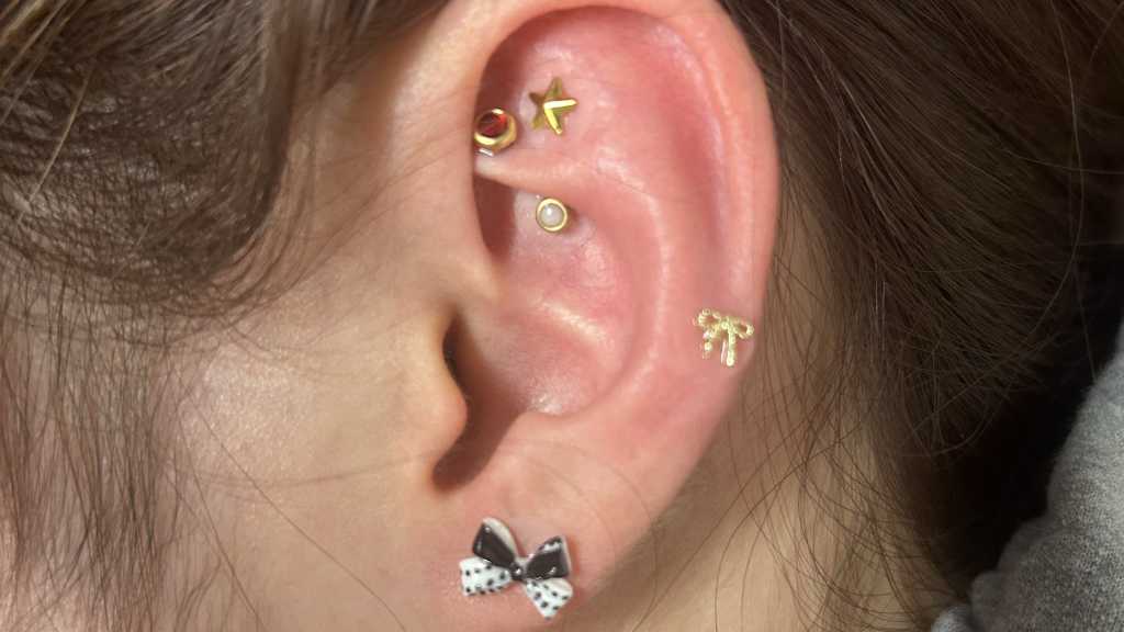 耳ツボジュエリー両耳10個です。ツボ以外のジュエリーはオプションにて可能です。 簡単な耳リフレ→ジュエリーの選択→施術になります。耳ツボジュエリーは貼った後1週間でご自身で剥がして頂きます。 金つぶ、銀つぶ、チタンつぶがあります。アレルギーのある方はチタンになります。 シールかぶれがでる時もあります。痒み、痛みが出た場合すぐに剥がして下さい。 耳ツボは探知機を使用するので安心です。
