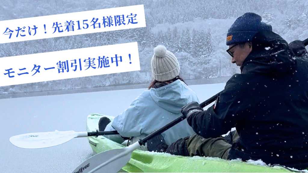 【今だけ!先着15名様限定モニター割引実施中!】 モニター体験割引お1人28,000円→18,000円 ※モニター体験の参加の方※ モニター体験のお客様には、SNSにて体験の様子を 撮影する場合がございます。予めご了承ください ★嬉しい特典 体験中に撮影したデータをプレゼント - 最大人数:6名様まで(2組までOK) - 催行人数:2名様より受付 --- ★スケジュール | 時間 | 内容 | | 10:30 集合 | 女沼にて受付・準備 | | 11:00〜14:00| ⛄️ カヤック体験(女沼) | | 15:00〜| アースバッグサウナ体験(古民家) | | 宿泊 | 古民家にてグランピング宿泊(〜翌9:00チェックアウト) | --- ★ 宿泊について - お部屋:古民家内グランピングテント × 2基 囲炉裏や暖炉もあり非日常空間でゆっくり過ごせます (詳細は公式HPにてご確認ください) --- ★ 食事プラン - 夕食・朝食はみんなで調理体験! みんなでわいわい楽しく作っていただきます。 - 持ち込みOK! お飲み物類・お酒の持ち込み各自自由です。 ※昼食はご持参ください。 --- ♨ サウナ体験 - アースバッグサウナをご利用いただけます。 自然素材で作られたサウナで、自然の風を感じながらリラックス。 水風呂代わりに雪に飛び込みのもOKです。 ドラム缶露天風呂あり --- こんな体験も! - みんなで雪かき体験 - 薪割り体験 - 暖炉への薪入れ - ふくしま名物「芋煮鍋」づくり ★こんな方におすすめ - 自然の中で思い切りリフレッシュしたい方 - 仲間や家族とアウトドア&古民家体験を楽しみたい方 - 福島の冬を全力で楽しみたい方 - カヤック・サウナ・古民家宿泊を一度に体験したい方 --- ご用意いただくもの - 防寒着類(貸出・用意も可能です) - 飲み物、お酒などは各自持ち込みでお願いします ※カヤックのみの体験ツアー日帰りも可能です。 ※女沼湖では、冬でも氷が張らない日や雪のない日もあります。 あらかじめご了承ください。 ご予約の方は公式LINE、電話にてお問い合わせください。 宿泊施設詳細は公式ホームページへ