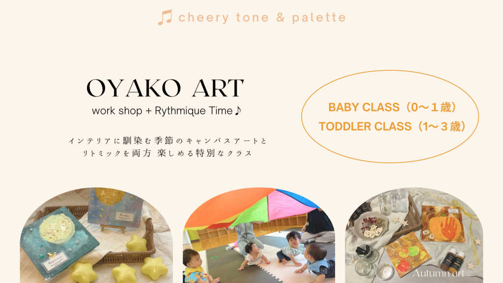 ■親子アートワークショップとリトミックレッスン♪ 作りやすく飾りやすい小さいキャンバス(20cm×20cm)を使って、季節のアートを親子で作るワークショップ🎨と、リトミックのレッスンを楽しめるクラスです♪ ⚫︎トドラークラスの対象年齢 1歳ごろ〜3歳(歩行が始まってからのご参加をお願いします)のお子さんとママ ■当日の流れ 10:00〜お越しいただいた方から順に受付・お支払いをお願いします。その後順次ワークショップの活動を始めていただきます。 ワークショップはお子さんも一緒に作品作りを楽しめる工程がいくつかあります♪様子を見て、それぞれ取り組んでみましょう!(講師によるサポートももちろんあります!)ママがかざりつけや仕上げをしている間は、お子さんは楽器やリトミック教具で遊んだり、簡単な制作あそびをして過ごします。 作品作りが落ち着いたら、最後にみんなでリトミックの時間を楽しみましょう♪ ◾️場所:ワクリエ新居浜 キッズスタジオ ■予約の際の注意事項 ワークショップ当日に、お子さまのお名前入りクラフトタグをプレゼント致します♪ ご予約時に、お子さまのお名前を「ひらがな」で、必ずご入力下さい。 例:ママの氏名(お子さまの名前) ■キャンセルに関して 材料の仕入れや準備の関係上、キャンセルの際は速やかにご連絡頂きますようお願いいたします。 当日の体調不良によるキャンセルに関しては、どうぞ無理なさらずご連絡下さい。次回以降の予約を優先的に受付させていただきますのでご相談下さい。