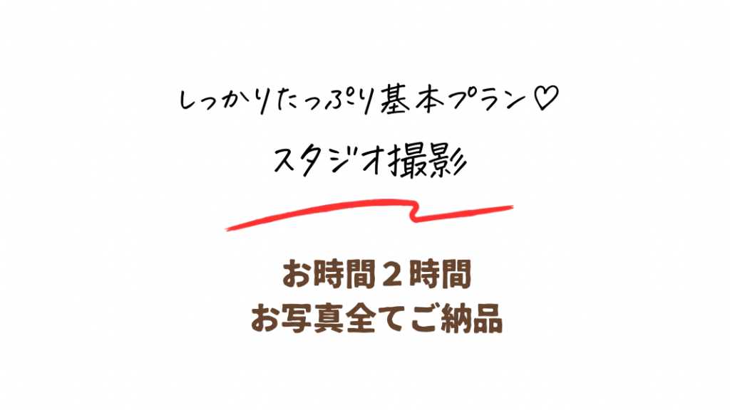 ■サービスの内容 撮影はアシスタントがおりません。 ママパパに笑顔のお引出しのお手伝いをお願いしております。 スマートフォン・ビデオカメラ以外での撮影はご遠慮ください。 ■当日の流れ ご予約時間にお越しください。 15分以上ご来店が遅れた場合撮影できない場合がございます。 ■予約の際の注意事項 ご質問等ございましたら公式LINEよりご連絡ください。 こちらからご連絡させていただく場合はメール又はお電話させて頂きます。 ■キャンセルに関して 前日・当日キャンセル100% 体調不良による撮影日変更はご連絡ください。