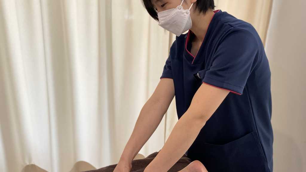 足の指先から膝下までをマッサージオイルを使用し、血流やリンパの流れを促進します☆ ※オイルが衣類に付着することがありますので、施術着に着替えて頂きます(無料で貸出し中)