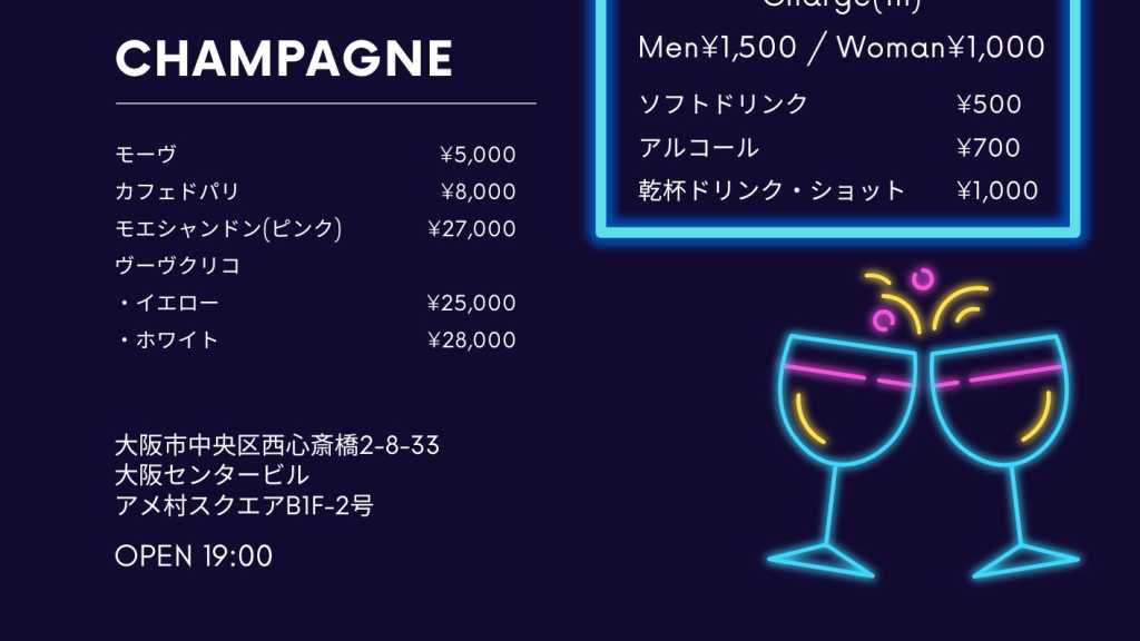 19:00~終電くらいまで😌 大阪府大阪市中央区西心斎橋2丁目8-33 大阪センタービル アメ村スクエアB1F-2号