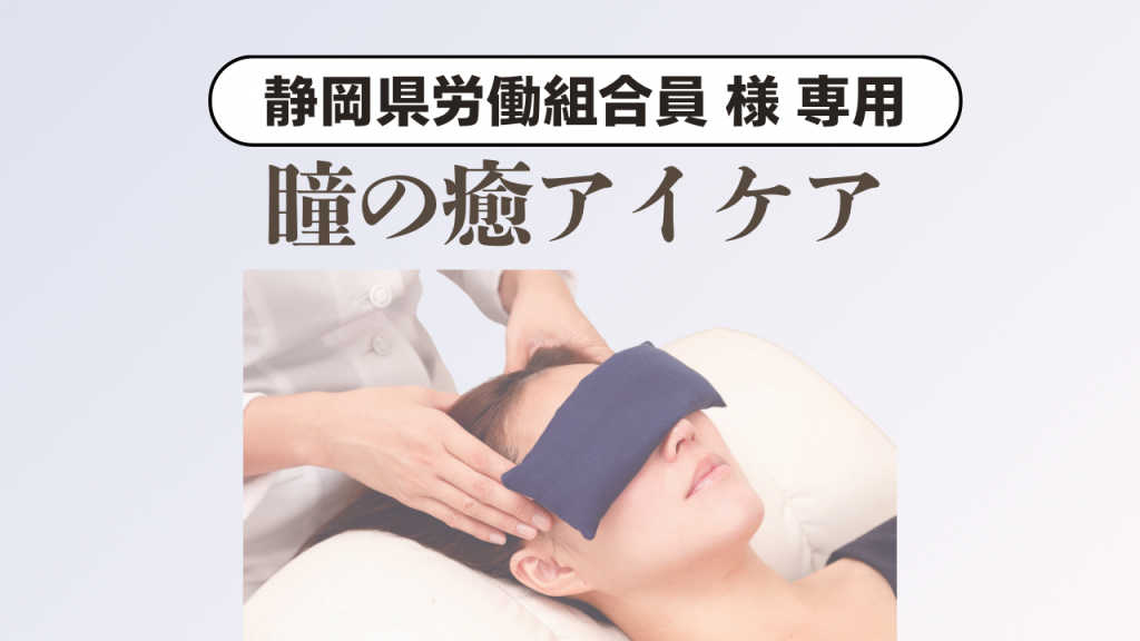当サロンは静岡県労働組合 事業推進協力店です。 組合員様専用の予約メニューになります。 ※※特別サービス内容にて0円表示となっておりますが、組合で表記があった通りの料金は発生いたします。 ※ご来店の際、組合員証を必ずご持参ください。 【内容】 アイケア+アイハーブカイロ +頭のマッサージ 60分 ハンドマッサージ 10分 合計70分 \ こんな方にオススメです / ◯目を使うお仕事をされている (デスクワークでパソコンを長時間見る) ◯スマホ時間が1日2時間以上の方 ◯頭痛や偏頭痛が増えた ◯肩こりがある ◯目が重い ◯ドライアイで眩しい、目が開かない ◯食いしばりの癖がある ◯眠りが浅い・なかなか寝付けない ◯視力が落ちた気がする ◯癒されたい 【ご来店時のお願い】 ▶︎早くに駐車場に到着された場合、『予約時間になりましたら』インターホンを鳴らしてください。 ▶︎遅刻してしまう場合は、ご一報いただきますようお願い申し上げます。 遅刻時間により、ご希望の施術が受けられない場合がございますのであらかじめご了承ください。 【キャンセルについて】 ▶︎予約当日の朝8:00までにご連絡いただきますよう、お願い申し上げます。