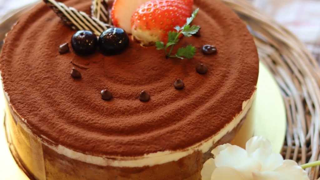 コーヒー生地のスポンジをシート状に焼き上げ、マスカルポーネクリームを入れたティラミスをホールケーキにしました。 あまり生地にてティラミスを個別に作りご試食のティータイムもございます。
