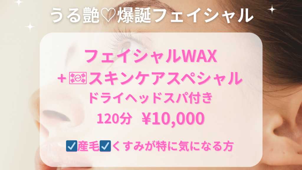 フェイシャルWAXの前後に🇰🇷スキンケアとスペシャルパックでお肌を整えます✨ スキンケア浸透中にはプチドライヘッドスパで頭皮からリフトアップ致します💆♀️ ▫️お手入れ前1、2週間はうぶ毛を剃らず、なるべくノーメイクでお越しください。 ▫️他店はもちろん、フェイシャルメニューをされてから1ヶ月はあけてください。