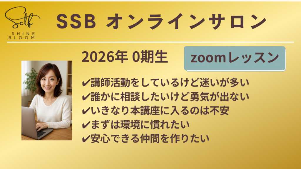 Self Shine Bloom 2026年開講 0期生 月額オンラインサロン SSB 公式LINE ▶️https://lin.ee/B5paT07B SSB LP ▶️https://self-shine-bloom.com ── ── ── ── ── 【料金】 ● 月額 3,000円 ※SSBコースの生徒さまは無料です ご入会特典🆓canvaスマホレッスン4本プレゼント🎁 🔴SSB🆓サロンメンバー相談会 1/30(土)20:00〜21:30 🔴 SSB🆓サロンメンバー相談会 2/28(土)1900〜20:30 ※SSBオンラインサロン入会の生徒さまは、顔ヨガサブスクレッスン無料🆓になります。 ご希望でしたらお知らせください ✔︎ 講師活動の不安を気軽に相談できる環境 ✔︎ 月数回の無料Zoomレッスン(グループ) ✔︎ 公式LINEで質問・交流OK ✔︎ SSB公式サイトの「講師一覧ページ」に掲載可能 ✔︎ 仲間とつながり“安心して一歩進める”サポート 予約サイトでのご予約後に Self Shine Bloomの公式LINE ▶️https://lin.ee/B5paT07B へご連絡お願いいたします お支払いは、銀行振込、PayPay PayPal、カード決済が可能です ※PayPayとPayPalをご希望の生徒さまは、お支払い時に 銀行振込をお選び頂き、公式LINEより ご連絡お願いいたします。 QRコードをお送りいたします。