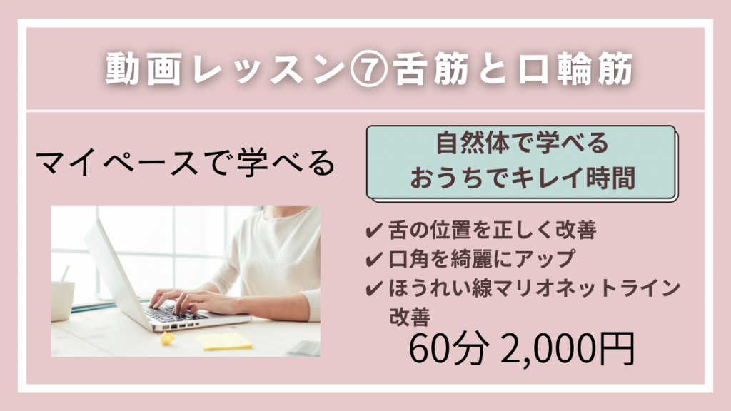動画レッスン⑦ 舌筋と口輪筋を鍛えてリフトアップ初級 ☑️舌が上顎にくっ付いていない ☑️お顔のたるみが気になる ☑️口角が上がらない ☑️頬のボリュームがない ☑️ほうれい線、マリオネットラインが なかなか消えない ☑️姿勢が悪い この様なお悩みをお持ちの生徒様向けの レッスンになります‼️ 舌筋と口輪筋はお顔のリフトアップに 欠かせない筋肉です‼️ しっかり鍛えて強くしていきましょう ストレッチなどを含めて 約12ポーズ習って頂きます ※こちらは動画を見て頂くレッスンになります ※動画の視聴はGoogleドライブをお使い下さい ※まずはニッコリスマイルからお受け下さい ご予約後はお手数ですが 公式LINEよりフルネームと ご予約のレッスン名をお知らせ下さい。 詳細をお送りさせて頂きます。