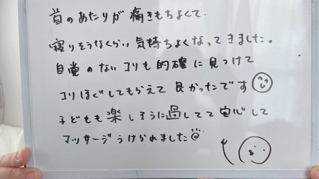 頭〜肩,デコルテ,肩甲骨をほぐしていきます。 肩〜頭まで凝っておツライ方にオススメ! 血行が良くなり,お身体がポカポカ温まります。 寝落ちする方も多いので,質の良いお昼寝になります! ※施術時間のみの表記となっております。 初回の方はカウンセリングに10〜15分ほどお時間をいただきます。 ※前後のご予約地域によっては日時変更をお願いすることがございます。 ご予約の際は備考欄に必ず,第2希望・第3希望の日時と住所のご記入をお願いします。