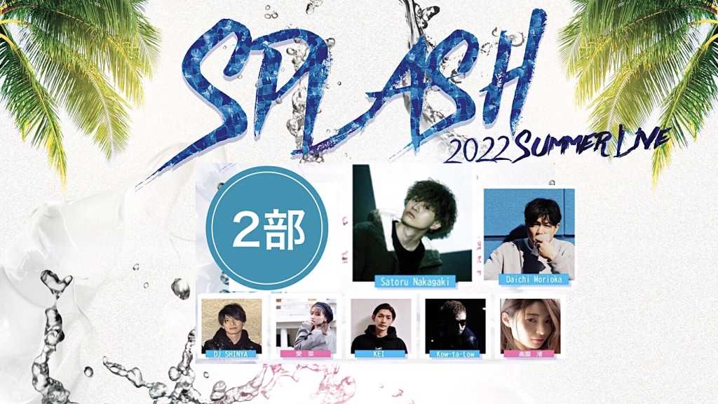 2022 Summer Live “ SPLASH “ 2022/08/21/日曜日 at G-COLLECTION 佐賀県佐賀市中央本町1-24 北村ビル2F TEL 0952-40-0460 2部 18:15~ ¥3000 1drink付き ※2部終了後各物販有り ※タイムテーブルは変更となる場合もあります <出演> MC 山口あんず [2部] Satoru Nakagaki Daichi Morioka 高園 渚 Kowta-Low KEI 愛菜 DJ SHINYA ★予約方法★ ①下記「予約できる日を探す」を押して、 カレンダーより8/21を選択する。 ②時間を選択 ③tolのご利用が初めての方はこちらからか予約を押してください。 ④予約フォーム(氏名、アドレス等)をご入力ください。