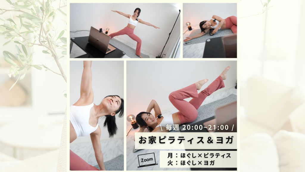 〝自分の力で、自分を整える〟ことで ⚫︎生涯に活きる身体の使い方を学べる ⚫︎整えた後の持続時間が長くなる 身体を動かし、心を整えることで 心身ともに、より良い状態を保てる 〝知識と習慣〟が身につきます😌 このクラスでは ❶ オリジナルメソッド『Re-born stretch-ほぐし矯正-』 ➡︎柔軟性UP・凝りや不調の予防・解消 ❷ ヨガ : 体幹強化・ココロをリセット ❸ ピラティス : 日常〜スポーツまでに活きる身体の使い方 この3つを掛け合わせた ここでしか受けられないレッスンをお届けします !! 健康に大切なことは〝継続〟です。 だからこそ 日々の生活にオンラインレッスンをプラスして ! 継続できる環境と仲間を作り 健康&笑顔あふれるHappyな日々を過ごしていきましょう !! みなさまのご参加、お待ちしております !!🧘♀️🌿 –––––––––––––––––––––––––––––––––––––– 【オンラインレッスン】20:00~21:00 ⚫︎毎週月曜日 : ほぐし✖︎ピラティス ⚫︎毎週火曜日 : ほぐし✖︎ヨガ 【単発】1,500 ※ご希望の方はご連絡ください !! ➡︎公式LINE@ : https://lin.ee/WbxxR13 –––––––––––––––––––––––––––––––––––––– \こんな方におすすめ!/ ・体が硬くてヨガできるか不安 ・体の凝りがひどい ・ぐっすり眠れない ・自律神経整えたい ・健康的な心身をつくりたい ・動きたいけど続かない など... ※Zoomを使用したレッスンです !! ※筋膜リリース時に ●リリースボール(テニスボール・ゴルフボールでも可) ●フォームローラー(タオルでも代用可) を使用しますのでご準備いただけますと嬉しいです! ※始めての方・運動に自信のない方大歓迎です !! ー効果ー 姿勢改善/ボディメイク/体質改善/リフレッシュ/柔軟性向上/心身が整う