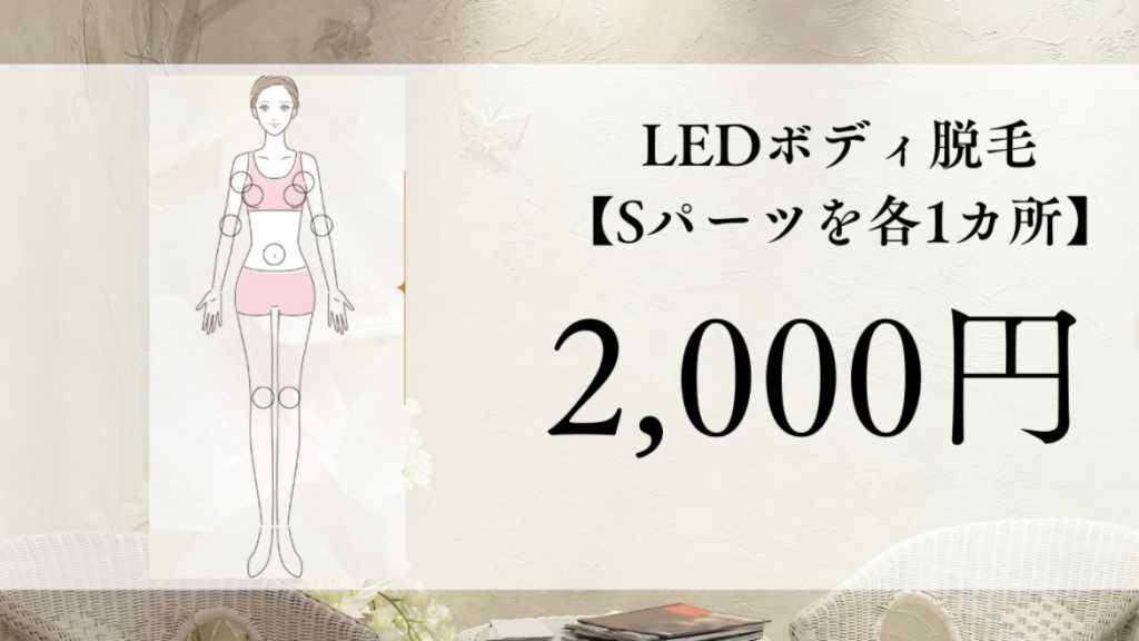 LEDボディ脱毛 Sパーツメニューです。 料金は各1ヶ所ずつのお値段となります。 【他のパーツとセットで1500円】 【U20(16歳から20歳までのお客様に適用される施術価格です) 各1,500円】 Sパーツ [両脇/うなじ/手の甲・指/膝小僧/おヘソ周り/乳輪周り/両肘] ◎GleamのLED脱毛とは レーザー脱毛機に近いスピードで脱毛が完了しやすく、レーザー脱毛よりも痛みが少ない、いいとこ取りの最新の脱毛法です。 ◎ 通う回数と頻度 毛の濃さや密集度により効果に個人差はございますが、通う回数はボディ脱毛の場合5、6回~10回、通う頻度は3週間〜1ヶ月に1回の頻度での脱毛施術を推奨しています。 ◎ 同時に嬉しい赤色LED効果 GleamのLED脱毛マシンは赤色LEDなので、更なる美容効果をご実感して頂けます。”ニキビ・ニキビ跡” “しわ・しみ”くすみの改善””線維芽細胞の活性化” などの回数を重ねれば重ねるほど、綺麗でハリのあるお肌になることが期待できます。 【※施術前の注意事項※】 当サロンでは脱毛施術の前に(1日前に) “脱毛箇所のシェービング”をお願いしています。 また、”全顔脱毛”をご利用のお客様のみ 施術前のシェービングを実施しております。 皆様には大変お手数をおかけいたしますがご協力・ご了承の程、宜しくお願い致します。 ※LED脱毛menuは全て1回料金設定ですので、お好きなパーツを毎回お選びいただき、自分のペースで通っていただけます。 ※当店の脱毛は施術時ジェルを使用致します。 ※未成年のお客様(高校生〜17歳以下)は、当サロンが指定している"親権同意書"に親御様からのサインを頂いております。 施術時間目安:30分