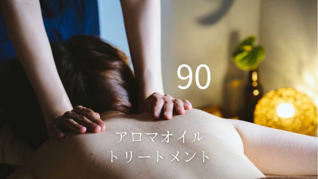 ストレスが溜まっている方、冷えが気になる方へ。 うつ伏せ〜仰向けで全身まんべんなく、お疲れの箇所はしっかりと90分。 アロマオイルを使って流しながらほぐしていきます。 お好きな香りに包まれながら心身ともにリラックス。リンパの流れや血行も促進。筋肉もしっかりゆるみます。