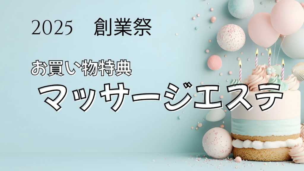 ■マッサージエステサービス ■予約の際の注意事項 ・創業祭(11/18~11/24)期間中に、お買い物予定があるお客様のみご予約いただけます。 ・創業祭の事前適用期間中にご来店いただきましたお客様につきましては、創業祭期間が終了した後(11/25~)ご予約が可能となります。