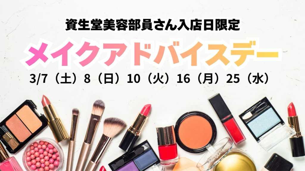 ◾️サービスの内容 資生堂美容部員さんの入店日 限定のメイクアドバイスデー おひとり様30分〜※最長50分 ◾️お土産サンプル めぐりを改善する アンチエイジングスキンケア 資生堂ベネフィークサンプル1日分 +インウイベースメークサンプル ◾️当日の流れ 資生堂の骨格分析アプリで診断 下記のご要望のうち2つお選びいただき、実践的なアドバイスを行います♪ ①眉の描き方レッスン ②似合うアイシャドウ選び ③似合う口紅選び ④似合うベースメイク選び ※フルメイクは行なっておりません ※使用アイテムは資生堂商品に限ります ◾️予約の際の注意事項 予約時間までにご連絡なく10分以上遅刻した場合キャンセルさせていただきます。