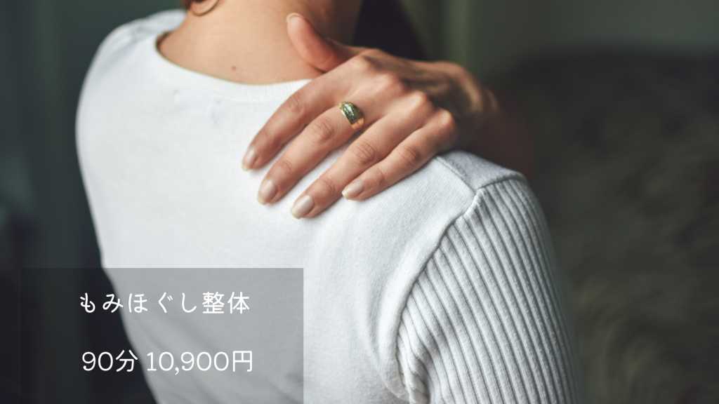 お疲れの気になるところをお伝えください。 お好みの手圧ともみほぐし、ストレッチを取り入れながら コリと緊張を和らげます。着衣のままお受けいただけます。 〜施術までの流れ〜 ■フットバス、カウンセリング ↓ ■施術着にお着替え(ご希望の方のみ) ↓ ■ベッドにうつ伏せになりお待ちいただきます 〜施術内容〜 ■お体背面 ↓ ■両脚前面 ↓ ■首元(アロマオイルを使用します) ※やってほしい部位、やらなくていい部位がある場合は 調整しますのでご相談ください