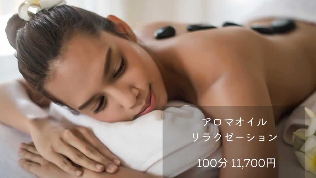ココナッツオイルやグレープシードオイルなどの 保湿効果の高いオイルをベースに、 アロマオイルをふんだんにブレンドした 高級バリニーズオイルをたっぷりと使用します。 ホットストーンで体を芯から温めながら行う、 深いリラクゼーションを味わえるコース。 お疲れの部位、お好みの手圧など、 お体の状態に合わせてお受けいただけます。 ⭐︎+1,100円で、強い疲れや筋肉痛に特化した アルニカオイルに変更いただけます。 オプションにてお選びください。 〜施術までの流れ〜 ■フットバス、カウンセリング ↓ ■お着替え(紙ショーツor紙トランクス) ↓ ■ベッドにうつ伏せになりお待ちいただきます 〜施術内容〜 ■お体背面 ↓ ■両脚前面 ↓ ■両腕 ↓ ■デコルテ ※やってほしい部位、やらなくていい部位がある場合は 調整しますのでご相談ください。