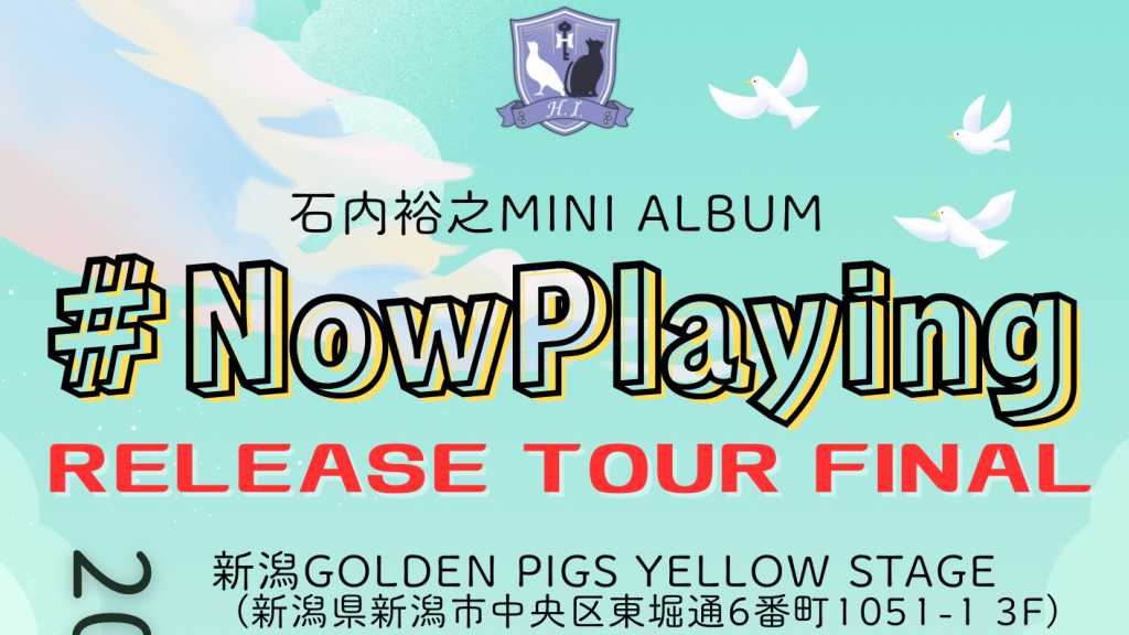 石内裕之 ミニアルバムリリースツアー #NowPlaying ファイナルとなります。 新潟ゴルピイエローにて、 皆様のご来場をお待ちしております。 日時: 2026.3.17(火) 会場: 新潟LiveHall GOLDEN PIGS YELLOW STAGE (〒951-8065 新潟県新潟市中央区東堀通6番町1051-1 3F) 開場/開演 18:00/18:30 チケット料金: 前売り/当日 ¥2500/¥3000 (+1ドリンク代¥500) 出演: 石内裕之 しのだ 小池律 ES アオキゲンキ