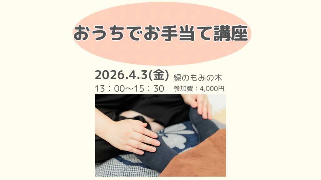 「一家に一人、お手当て人」 優しく相手に触れて、心と体の強張りを解きほぐし、 脳脊髄液の流れを促すことで自然治癒力を高めていく 手技療法の和のお手当てのエッセンスを取り入れた お手当て講座です。 ご家庭でも使いやすいものを抜粋し、 一緒に練習していきます。 「家族や近しい人へのケアに活かせる」 子育て・看病・介護・災害時にきっと役に立ちます。 お手当てする人もゆるむので、 セルフケアにもなります。 講座では、「優しく触れられることの心地よさ」を 体感していただきます。 人に触れるときに意識するポイントを押さえれば、 どなたでも家族のお手当て人になれます。 ※お子さん連れの際は、ご相談ください。 【開催日】 2026.2.16(月) 【時間】 10:00〜12:30 【場所】 緑のもみの木(盛岡市みたけ) 【参加費】 4,000円 【講師】 安西 はるな 和の頭蓋仙骨療法(クラニオセイクラルセラピー)お手当て人