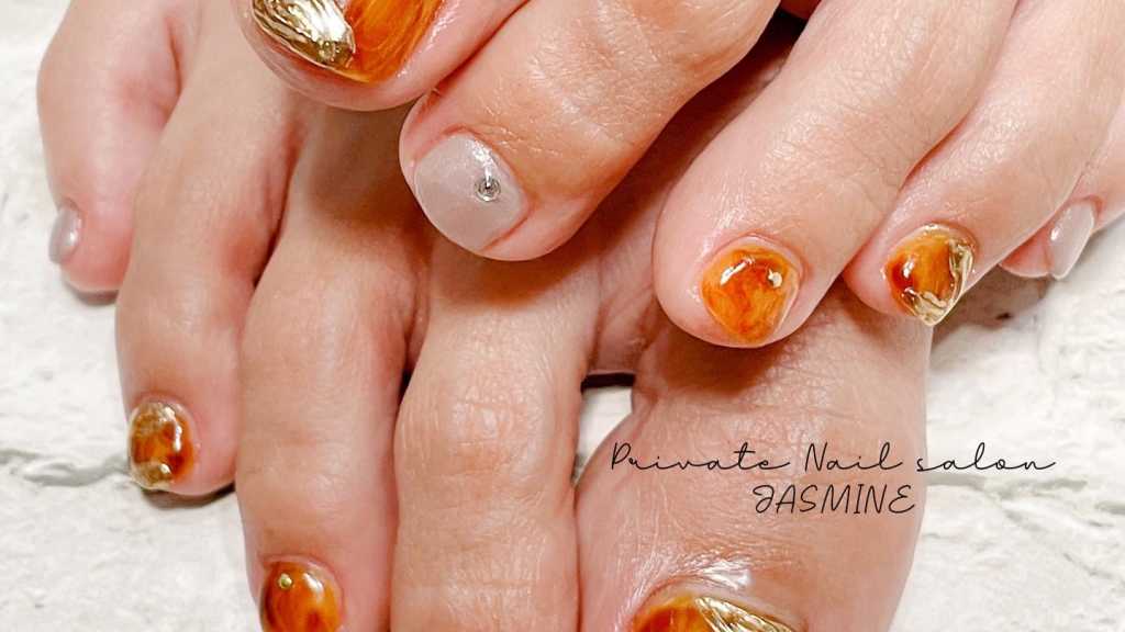 foot ジェルネイル(ケア込み) 店内見本よりお選びいただきます。カラー、パーツ変更は可能。ただ、見本にあるカラーではなく、混ぜてオリジナルカラーを作る場合は、別途料金¥200〜かかります。さらにカラー追加や、アート、パーツ追加は、¥110〜追加料金をいただきます。 ※オフがある方は必ずお知らせください。オフありを伝え忘れの場合、施術内容が制限されてしまう場合があります。ご了承下さい。 (当店 7週間以内にご来店でオフ無料) 7週間以降は、+¥550- 他店は、+¥1,500- 所要時間は、オフ有の場合 オフなしは120分です。 ※爪の状態を、みさせていただき、状態によってはお受けできない場合もございます。ご了承ください。 ※他のお客様へのご迷惑となりますので、当日の無断キャンセル厳禁。無断キャンセルの場合、次回のご予約をお断り致します。遅刻は、次のお客様がいらっしゃいますので、ご希望のデザインができない可能性もございます。あらかじめご了承ください。急な予定変更が続く場合、今後のご予約をお断りさせていただく場合もございますので、出来る限りご協力くださいますようよろしくお願い致します。