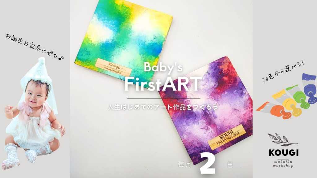 1歳のお誕生日やハーフバースデーに作りたい ベビーのファーストアートパネル ひのきのスクエアパネルにアートできます。 (13cm×13cm 壁掛け・スタンド棒付) 文字入れレーザー付♪ 完成品は時間内に即日お渡し 👉このワークショップは赤ちゃんも一緒にできます 👉名入れ文字入れは文字数制限なし ■開催日:毎月2日 定期開催 ■開催場所:KOUGI店舗内 ■体験時間:30分程度 ■体験料金:2000円 ■参加条件:0歳~5歳くらいまでのお子様と保護者様 ■お友達と一緒に2組まで同時予約可 予約時に備考欄にご記載ください 【ご注意】 当日キャンセルは必ず御連絡下さい 前日までキャンセルは予約サイトより可能です お電話→025-275-7801 instagram / LINE →@kougi_abm ※キャンセルされてもキャンセル料は発生しません。ご安心下さいませ。