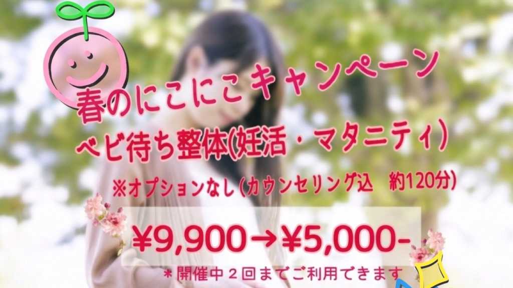 春のキャンペーン⭐︎ベビ待ち整体(約120分)です! (妊活・マタニティー可。オプションなし) 約120分カウンセリング込み。しっかりお身体の状態や妊活の状況など色々うかがって施術してまいります🙌 施術は身体全体の整体+頭蓋調整+内臓調整です。 カウンセリングと施術でお身体をみて、個人に合った妊活の向き合い方や今後どうすすめたらいいかなどもお話させて戴きます。 現在飲まれているサプリメントなどを踏まえてのアドバイス等もさせて戴いています(分子栄養学アドバイザーです) 春はベビ待ちにいい季節🌸このチャンスをぜひ生かしてくださいねー✨ 春もがっつり施術させていただきます🥰