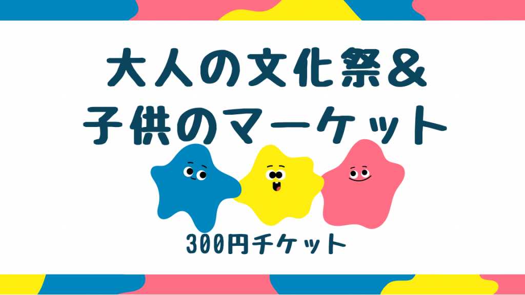 ■サービスの内容 10時からのチケットのご予約のお客様は 9時50分から受付可能です。 その後は時間内に受付ください。 会場内のものを300円分使えます。 ※混雑を避けるために、チケットの交換時間を区切らせて頂いてます。 ■当日の流れ 300円チケットを体験したいブース、物販を購入する際にご利用ください。 ■予約の際の注意事項 1グループあたり1枚です。 1家族あたり1枚です。 失くした場合再発行はでき兼ねます。 時間内に受付にて引き換え下さい。 尚、入退場は自由です。再入場もできます。 チケットの交換時間が決まっているだけで、入手後、お好きなお時間にご利用、ご来場できます。 ■キャンセルに関して 万が一キャンセルの際はご連絡ください。