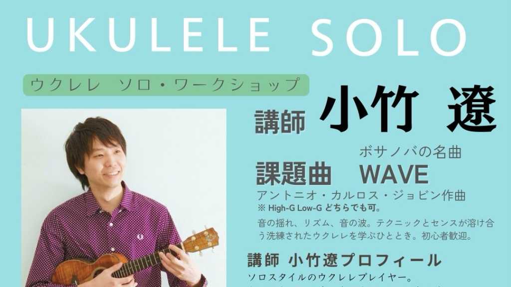 開催地 横浜市戸塚区 ウクレレ ソロ・ワークショップ開催のお知らせ ウクレレプレイヤー、小竹 遼(Ryo Kotake)さんを講師にお迎えし、を開催します! 今回の課題曲は、ボサノバの名曲 アントニオ・カルロス・ジョビンの名曲「WAVE」音の揺れやリズム、洗練されたウクレレのテクニックを直接学べるチャンスです。初心者の方も大歓迎ですので、ぜひお気軽にご参加ください。 日時: 3月22日(日) 10:00 〜 11:30 受付開始は9:40からです。 講師: 小竹 遼 小竹遼さんのオフィシャルサイト https://www.ryokotake.com/ 課題曲: 「WAVE」(High-G / Low-G どちらでも可) 参加費: 3,500円 定員: 20名(先着順) 💡 講師プロフィール:小竹 遼 ソロスタイルのウクレレプレイヤー。 ウクレレコンテスト全国大会でのテクニック賞受賞や、 教則本「ウクレレ入門」の執筆、 YouTubeチャンネル「ウクレレ散歩」の配信など、幅広く活躍中。 対象 TAB譜を読める方 会場: 戸塚区民文化センター さくらプラザ 4階 練習室4(創作室) 戸塚区戸塚町16-17 JR・横浜市営地下鉄「戸塚駅」西口より徒歩約2分 持ち物 ウクレレ、筆記用具 📩 お申し込み方法 以下の予約サイト、またはQRコードよりお申し込みください。 予約サイト: https://tol-app.jp/s/lelesapo/rw0ks5 【お問い合わせ先】 ウクレレサポート協会(担当:山本) メール:lelesapo.jimu@gmail.com