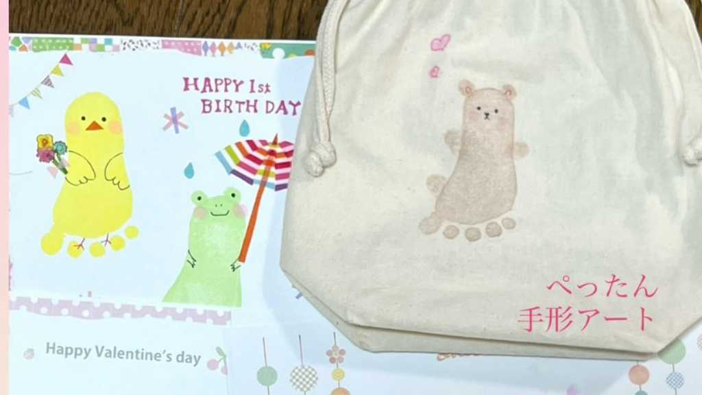 ぺったん手形アート お子様の手形足形を可愛いアートに!! 水溶性顔料インクで手形をぺったんしたあとは、 ママの工作タイム。 シールやペンで可愛く装飾すれば世界に1つのアートに。 通常の動物さんモチーフの他に、「バレンタイン」「ひな祭り」の台紙もご用意。 A4サイズ 1500円(2ペタ) 巾着トートバッグも大人気✨ 1500円(1ペタ) 数に限りがあります。 所要時間30分程度 デザインに悩む場合は、少し早くお越しください。 水溶性インクを私用しますが、真っ白なお洋服は落ちにくいのでご遠慮ください。 ベビー用品販売もございます。 TinyTeeth歯固め パッチンピン ■注意事項 ご兄弟2人ご参加の場合は、2枠ご予約ください。 (同じ時間2枠、次の時間で繋げて2枠どちらでも) お子様の急病やご用事ができた場合は、キャンセルのご連絡をください。