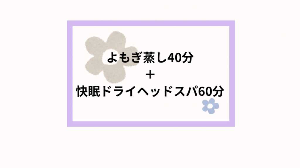 ■サービスの内容 おかま直伝よもぎ蒸し®︎で40分温まった後に快眠ドライヘッドスパ60分を受けていだだけるメニューです。 おかま直伝よもぎ蒸し®︎で身体を芯から温めてリラックスした後に さらに快眠ドライヘッドスパでリラックスしていただけます。 快眠ドライヘッドスパは 頭皮の血行を促進し、ストレス解消やリラックス効果が期待できる施術です。 ゴリゴリ・ぎゅうぎゅうしないソフトタッチで行います。 心地よいマッサージで疲れた頭皮を癒します。 起きているのか寝ているのかわからない不思議な感覚が リラックスできている証拠です。 +¥1,000でハーブリーディング🌿をつけることも可能です。 ※お二人でのペア蒸し&施術対応可能です。 ペア蒸し希望の方は下記の内容を備考欄に記入ください ・お名前 ・車の台数(2台駐車可能) ■当日の流れ カウンセリング(初回のみ) メニュー確認 お着替え よもぎ蒸し40分 お着替え 快眠ドライヘッドスパ60分 お会計 ■予約の際の注意事項 ・10分以上早いご来店はお控えください。 ・10分以上遅れる場合は連絡をお願いします。 場合によっては予約の内容を変更させていだだくか キャンセルをお願いする場合もございます。