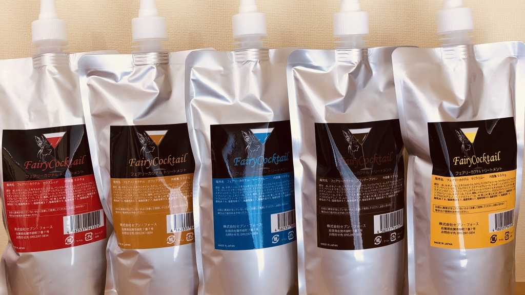 髪質改善カラー〈フェアリーカクテルカラー〉 カラーする度に毛髪がよみがえり!ツヤツヤに! 薬剤の80%はトリートメント剤。 続けていくうちにくせ毛も少し落ち着きやすく。 アルカリ剤が入っていないので頭皮の刺激を軽減。 髪に艶を与えながら嫌な匂いもほぼありません。 こちらのメニューはシャンプー後セルフブローとなっております。