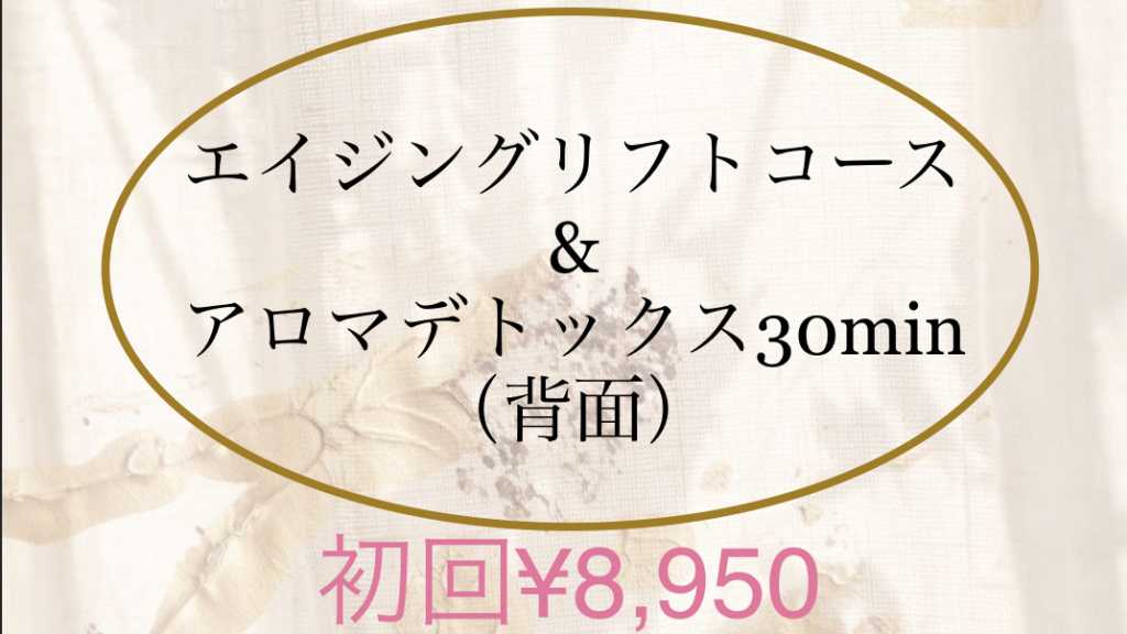 ※最終受付14時30分 ※夜サロン対象外です。 お支払い方法:現金、pay pay、LINE pay ⭐︎初回¥8,950(税込) 通常¥9,650(税込) 背面(足〜背中肩首)+エイジングリフトの、 贅沢な105分。別途カウンセリング、足湯が、ございます。メイク用品はご持参くださいませ。