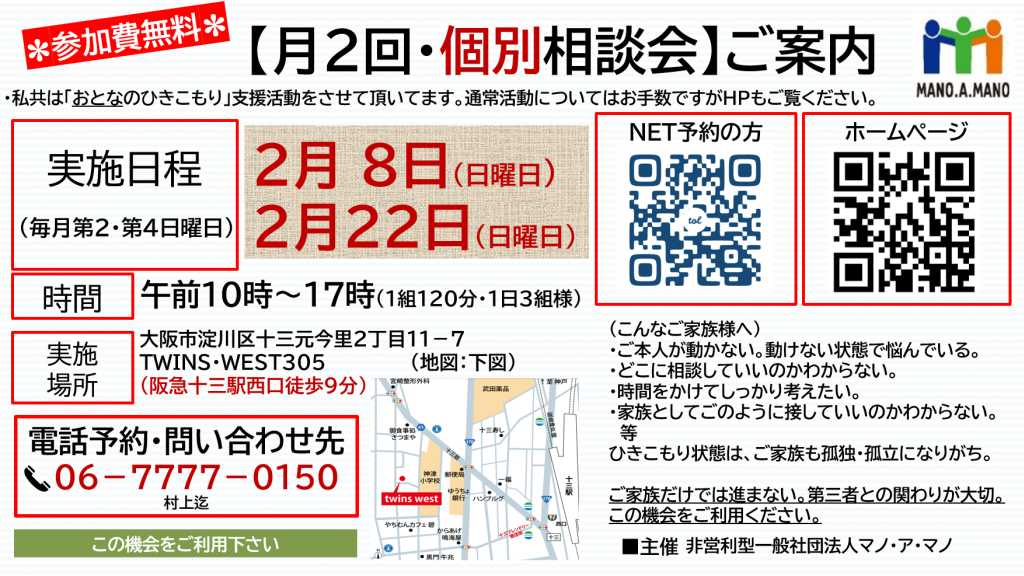 2026年2月8日・22日(日)個別相談会(無料)ご予約