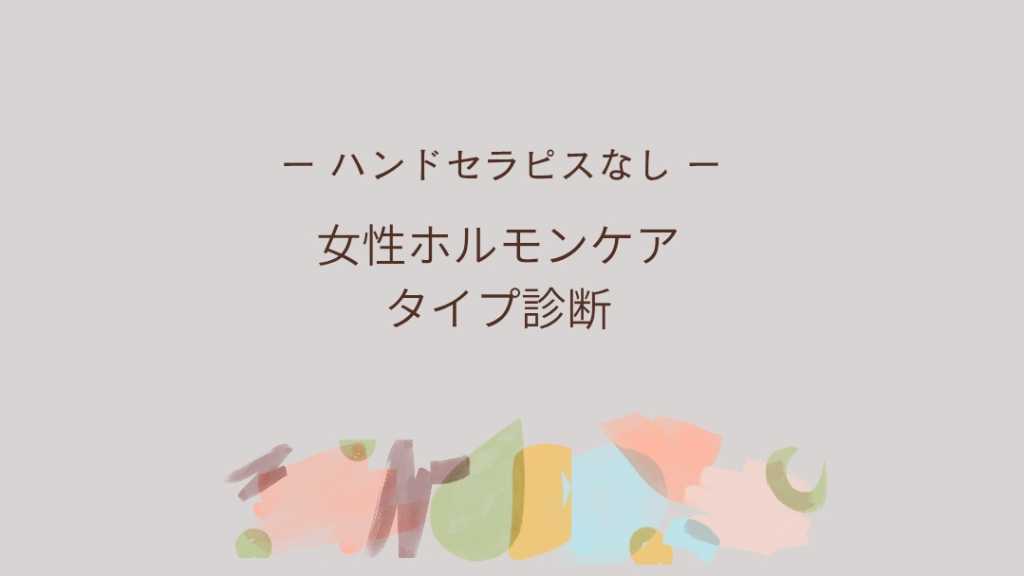※ ハンドセラピスご利用時は 最初にハンドセラピスメニューを選択 →オプションで【タイプ診断】の 選択をお願いします。 ✦サービスの内容 「女性ホルモン」と「カラダとココロ」は 大きく関わっています。 女性ホルモンの乱れの原因を探り 改善・セルフケア方法などの アドバイスをいたします。 ✦当日の流れ ✦予約の際の注意事項 ■キャンセルに関して