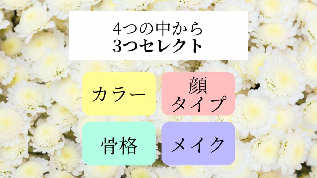 《4つの中から3つお選びいただくメニュー🌈》 自分に合ったメニューをセレクトして"似合う"を実感✨ [パーソナルカラー診断(12分類)] [顔タイプ診断®︎] [自分型骨格診断®︎] [パーソナルメイク] *各種メニューの詳細はホームページまたはInstagramにて ★人気の組み合わせ ・まずは診断で自分の似合うものを知りたい! [パーソナルカラー・顔タイプ・骨格] ・似合う診断結果も気になるけど特にメイクで垢抜けたい! [パーソナルカラー・顔タイプ・パーソナルメイク] ■[パーソナルメイク]を含む場合は、 ①デイリーメイクレッスン②スペシャルメイク&簡易ヘアの いずれかからお選びいただき、備考欄にご記載ください。 2名様が同じものをご選択いただくようお願いいたします。 ■メニュー時間:約5時間 (ご選択のメニューにより前後する場合がございます) ■メニュー料金 59,400円(税込)〈1名様あたり29,700円〉1,100円ずつお得✨ ■お支払い方法 銀行振り込みのみ 銀行振り込みができない特別な理由がある場合は、 備考欄にご記載いただけましたら別途支払い方法を 相談・ご案内させていただきます。 ■その他 ・診断結果カード(データ)のお渡し ・LINEアフターフォロー