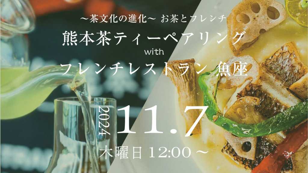 ◯開催概要 1979年に誕生した、熊本のカジュアルフレンチレストラン「魚座」。岡田伸夫シェフの人柄を表すようなやさしい料理と、居心地の良い空間は根強いファンを生んできました。今回、お茶結びプロジェクトが厳選した熊本茶と、フレンチをペアリングいたします。 〇開催日時 11月7日(木) 12時 開始 (受付11時半〜) ・約2時間半を予定しております。 ・開始時刻の5分前にはご着席ください。 ○開催場所 レストランUOZA 〒861-4137 熊本県熊本市南区野口3丁目18−46 https://maps.app.goo.gl/ZKXQkWgV8nwgWHRn6 〇参加費 5,000円(税込み) 当日現地お支払い(現金のみ) フレンチ料理のランチと九州茶のペアリング コース体験つき 〇定員限定 30名 先着順 定員に達し次第締切ります。 〇内容 九州の食材を活かした岡田流フレンチのランチコースをいただきながら、九州茶魅力のペアリングティーコースを体験していただきます。プレゼンターは、未来を見つめるお茶農家【お茶の富澤。】の富澤堅仁と、ティータイム・アーティスト 竹中昌子のティー・サーブで行います。 〇キャスト シェフ 岡田伸夫 九州茶プレゼンター お茶の富澤。富澤堅仁 ティータイム・アーティスト 竹中 昌子 ティーペアリング監修 料理研究家 徳永睦子 ○予約方法 こちらの予約ページからのみ受け付けます。 ○キャンセルについて ご都合によりご予約をキャンセルされる場合は3日前までに下記のメールアドレスまでご連絡ください。 当日のキャンセルは全額負担とさせていただきます。 5,000円のキャンセル料を後日ご請求させていただきます。 ochamusubi@foodium.co.jp ※メールでのご予約は承っておりません。 ■主催 一般社団法人お茶結びプロジェクト この事業は日本茶業体制強化推進協議会と一般社団法人お茶結びプロジェクトによる九州茶普及事業の一環として開催されます。参加者さまのご意見、ご感想やお写真は普及事業に活用させていただく場合がございます。