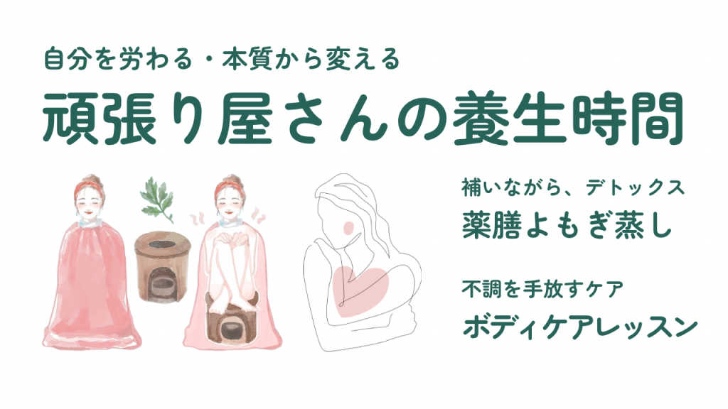 📢サービスのメニューが既にお決まりの方は ご希望メニューを備考欄にご入力お願いします ※ご予約当日メニュー決定・変更もOK 🌈極上養生セットメニュー90分 よもぎ蒸し+ボディケア 補いながらデトックスする最強健康法 あなたの体質にあった薬膳をブレンド 体が温まり巡った後のボディケアは至福のひと時 6,500円 🪽パーソナルボディケア あなたの体の不調に合わせて セルフケア方法・マッサージをご提供 筋肉をほぐしてストレッチで整え鍛える 60分4,500円 90分5,500円 🌿薬膳よもぎ蒸し70分 補いながらデトックスする最強健康法 体質改善、女性の不調改善に効果抜群 4,000円 ❤️生理限定プラン 足蒸し+肩こり腰痛骨盤マッサージ 生理のしんどさが消え去ります。 あれ?生理だったっけ?と 生理だったことを忘れます。 5,000円 🦄全メニュー、会計時次回分ご予約で 500円OFFとさせて頂きます! 🧚🏽♀️全てのメニュー子連OK ペア蒸し可能になりました! 2名様でご予約の場合も 備考欄に入力お願いします ■当日の流れ ◯初回極上養生セットの場合 10:30-10:40ヒヤリング、お着替え 10:45-11:20よもぎ蒸し 11:30-12:00ボディケア整体 11:00終了 ■予約の際の注意事項 ◯よもぎ蒸しをされる方は、顔の毛穴からもよもぎスチームを浴びる事で美肌保湿効果もあり、また汗をかいてメイクが落ちてしまうので、メイクせずありのまますっぴんでお越しください♡ ◯一般的に生理中のよもぎ蒸しはNGとなっていますが、当店は【生理中こそ、よもぎ蒸し】が効果的と考えており、下半身の冷え取り・骨盤仙骨周りを緩め生理痛を和らげる裸にならない【下半身蒸し】をご提供致します。 ■キャンセルに関して 当店はキャンセル料金は頂いておりません。ただ、ご予約枠を待って下さっている他のお客様のため、可能な限りキャンセルの場合はお早めにご連絡下さい キャンセルのご連絡は公式LINEでのみ受け付けております 公式LINEは↓こちらから登録お願いします https://lin.ee/FyCWYP0