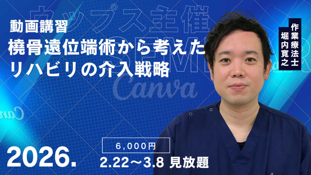 〜どのようにアプローチしてゆくのか〜 講師よりセミナー紹介動画 https://www.youtube.com/watch?v=sybzGd0sfwc 〔講師〕 堀内 寛之(ほりうち ひろゆき)先生 コロナ対策の一環として、 「動画講座を作ってほしい」という要望を受け、 本動画講座を完成させました。 下記内容を動画にて解説し、 お申し込みの方限定で公開いたします。 ご質問には可能な限り回答いたしますが、 多数の場合はお時間をいただく場合がございます。 あらかじめご了承ください。 〔内容〕 ① 橈骨遠位端骨折術のアプローチ方法 ② 橈骨遠位端骨折術アプローチから考えるリハビリ介入戦略 ③ 橈骨遠位端骨折術後の浮腫メカニズムとリハビリ介入戦略 ④ 手関節の解剖運動学から考える手関節治療戦略 前回大阪公演アンケート 満足度100% 受講生からは 「橈骨遠位端骨折術後のリハビリが、ここまで奥深いとは思わなかった」 という声が多数寄せられています。 講師はセラピスト向け勉強会団体に約4年間在籍し、 アンケート満足度98%以上を維持してきた実績ある講師です。 肩関節分野の第一人者である理学療法士のもとで研鑽を積んでおり、 信頼性の高い講義内容となっています。 橈骨遠位端骨折術後のリハビリに悩まれている先生方、 ぜひご参加ください。 臨床がより楽しく、深いものになります。 開催形式: YouTube配信(見放題) 開催日時: 2026年2月22日〜2026年3月8日 ※開催期間内はいつでも申し込み可能 視聴方法: ご自宅のYouTubeから視聴可能 開催前日までにYouTubeアドレス送付 当日に視聴用アドレス配信 配信期間: 2週間見放題 資料: データ配布 講師: 堀内 寛之 費用: 8,000円 今割 6,000円
