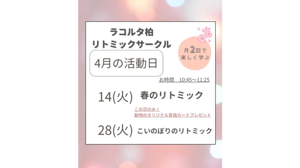 4/14(火)ラコルタ柏、異年齢0〜3歳、10:45〜11:25